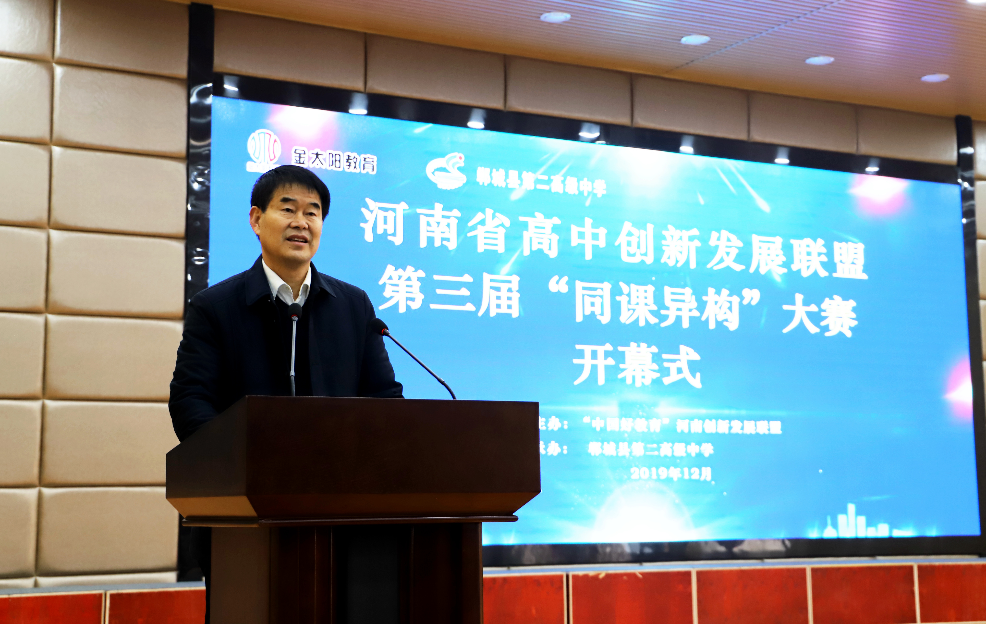 12月7日,由河南省高中创新发展联盟主办、郸城二高承办的全省第三届“同课异构”大赛开幕。郸城县教体局党组书记、局长刘现营出席开幕式并致词。来自全省15个县市区的高中代表队将在3天赛期内各展风采,共通思想、共享智慧、共融发展。