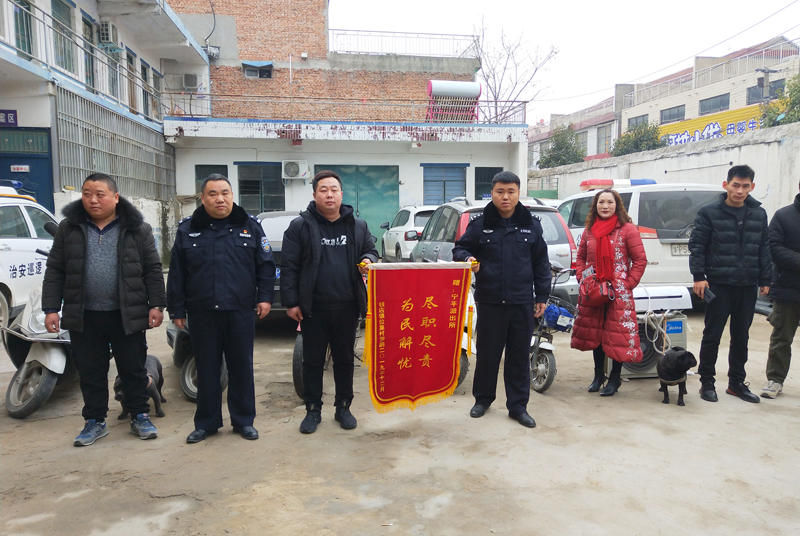 12月24日,郸城县宁平派出所报请县公安局批准,召开退赃大会,向群众发还破案追缴的4辆摩托车、1辆电动车、1台空调等赃物。广大群众拍手称赞,并将一面印有“尽职尽责,为民解忧”的锦旗送给办案民警,以示感谢。