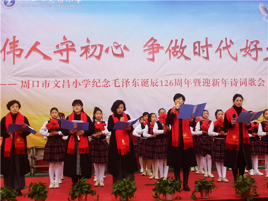 12月26日,是毛泽东诞辰126周年纪念日。为深切缅怀伟大领袖毛泽东,弘扬革命精神、民族精神和爱国主义精神,文昌小学举行了纪念毛泽东诞辰126周年暨迎新年诗词歌会。