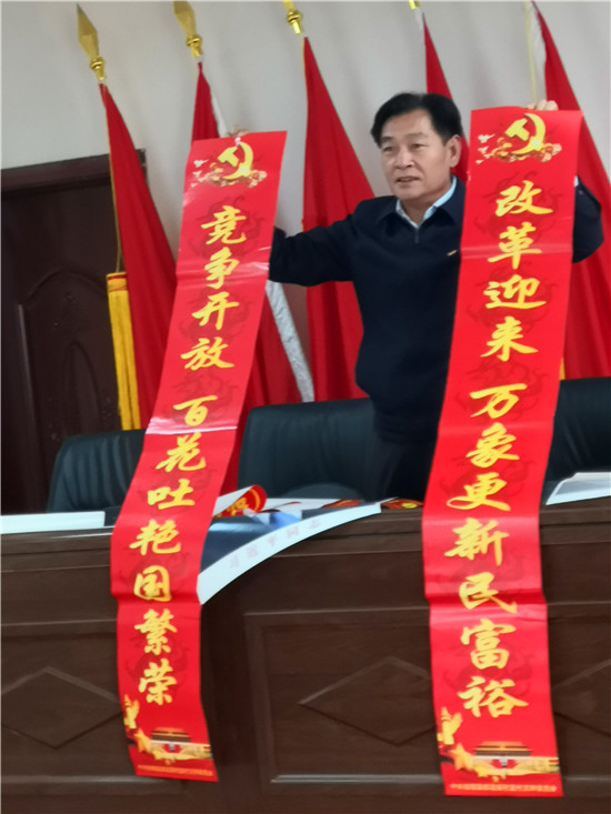 党的十八大以来,时庄村家家户户挂国旗、群众聚会唱红歌,每年春节,村支部就把带有党徽、歌颂党的春联,以及集中印刷的毛主席像、习总书记像免费送到每家每户张贴悬挂,让党的形象无处不在。