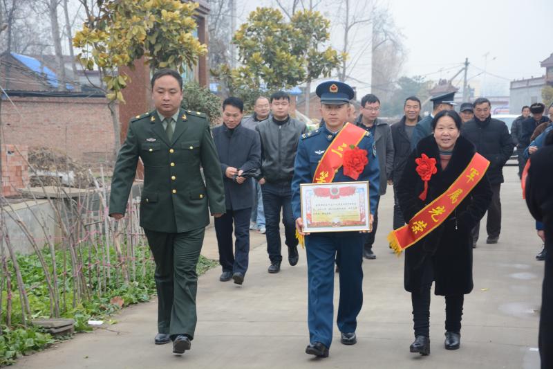 12月下旬,黄继光生前所在部队与沈丘县人武部、沈丘县退役军人事务局共同商榷,为了使军人的荣誉向官兵家庭拓展、向全社会辐射,在新年前开展一次功章励我强军志、立功喜报送到家活动,选派专人成立报喜小分队,为立功授奖的官兵家庭送去立功喜报和慰问金。