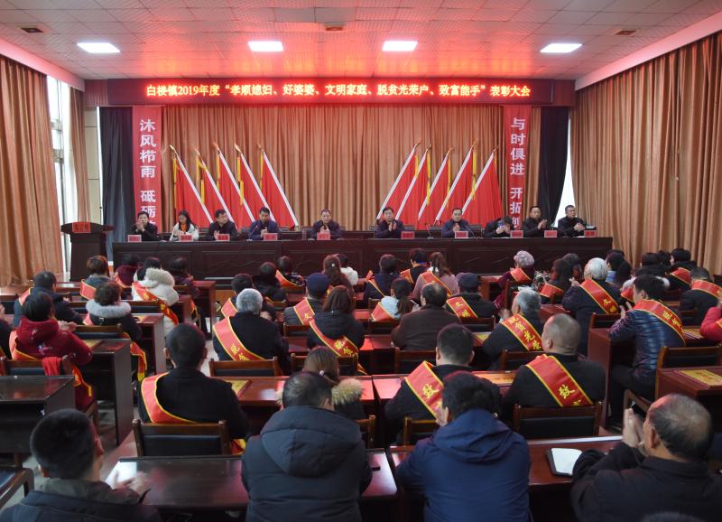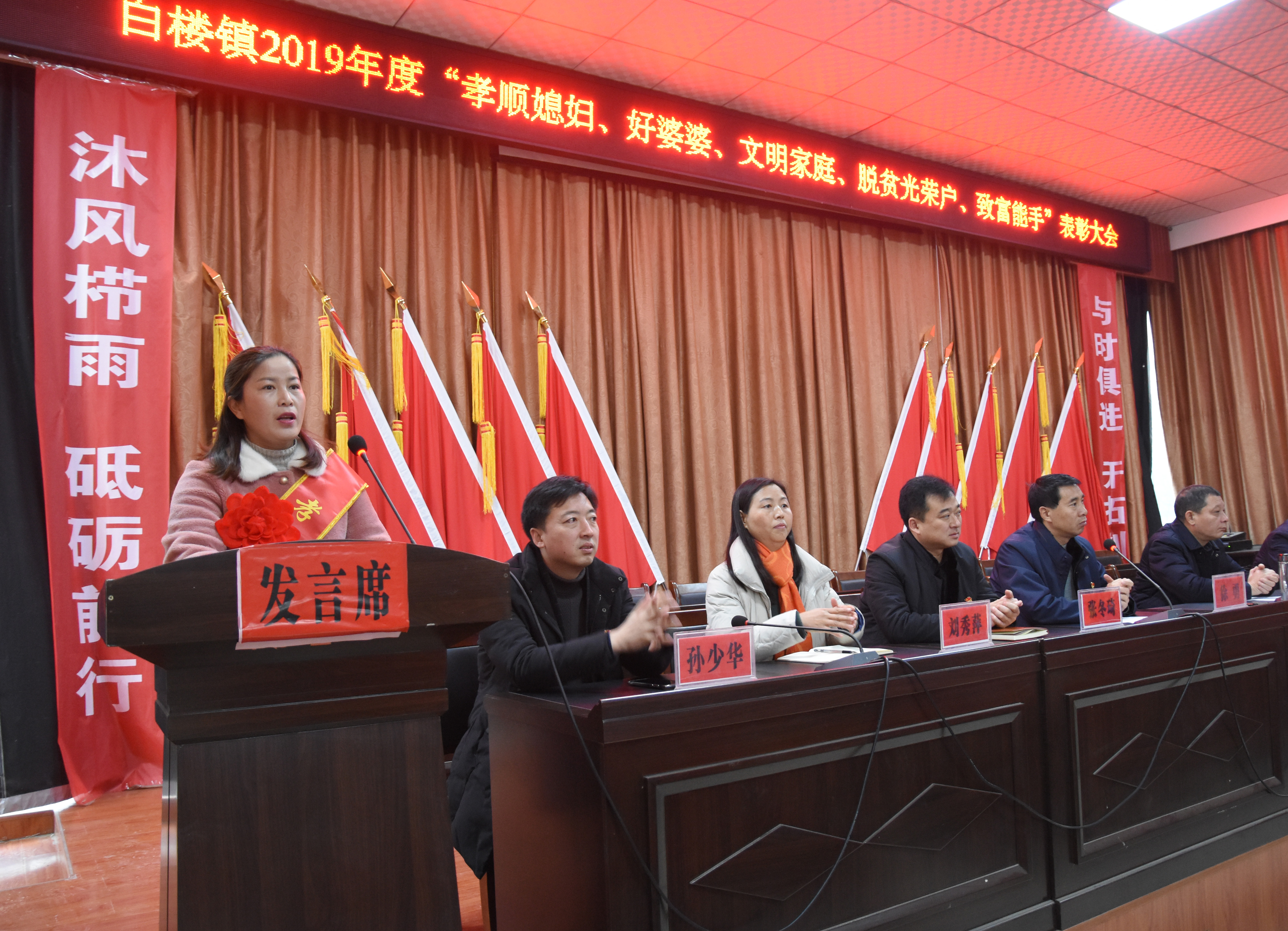 为弘扬中华民族传统美德,倡树文明新风,1月6日,淮阳区白楼镇召开孝顺媳妇、好婆婆、文明家庭、致富能手及脱贫光荣户表彰大会,区委常委、宣传部长谢留定出席表彰大会。