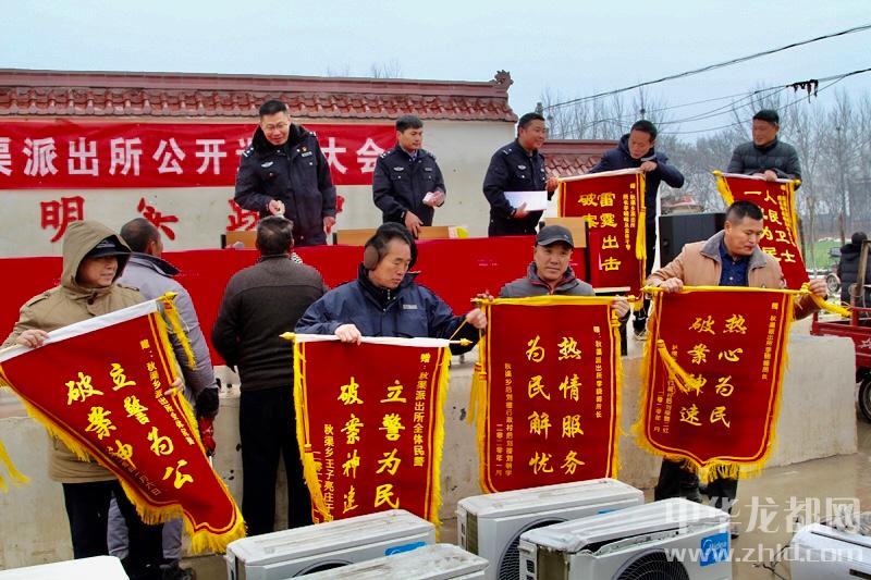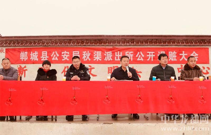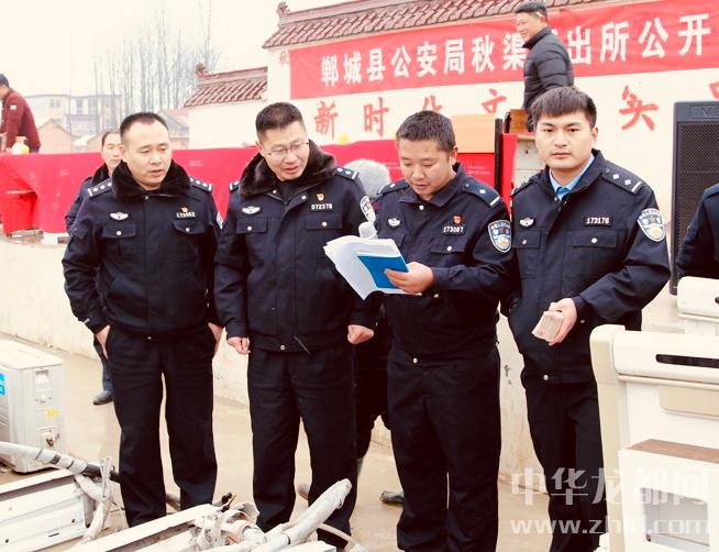 1月8日,郸城县秋渠派出所在张老庄行政村文化广场举行公开退赃会,将100余件被盗物品及2万元现金退还到失主手中,受到群众广泛好评。秋渠乡党委书记梁辉主持会议。