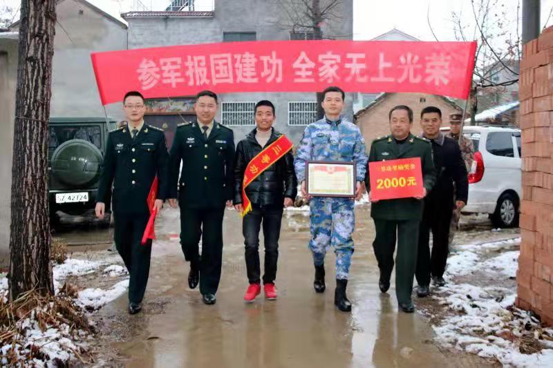 就在这样一个瑞雪初降喜盼丰年的日子,穆店乡四大王村热闹非凡。鹿邑县人武部、退役军人事务局、穆店乡政府带领96766部队人员,专程来到从该村入伍的三级士官李龙家中,送上三等功喜报和慰问金。面对乡亲们羡慕的目光,李龙的母亲陈秀英兴高采烈地说:“俺要叮嘱儿子继续在部队好好干,争取再立新功!”