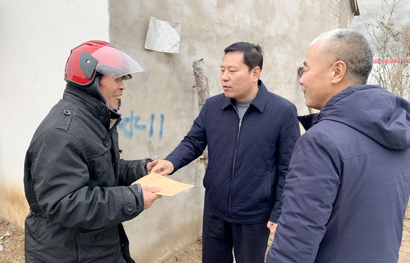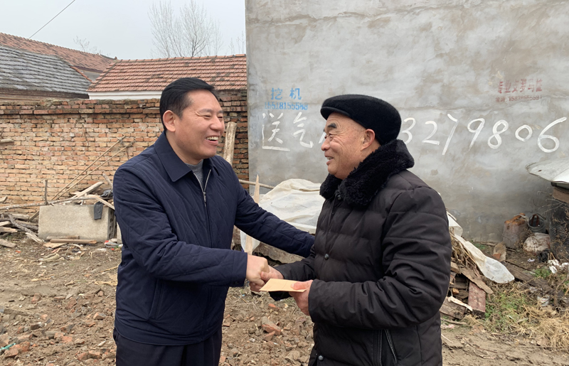 在牛庄和梁庄行政村,赵红建在宁平镇镇长王树勤的陪同下,看望慰问了困难群众、困难老党员,送去了慰问金,向他们致以新春的问候和美好的祝福。