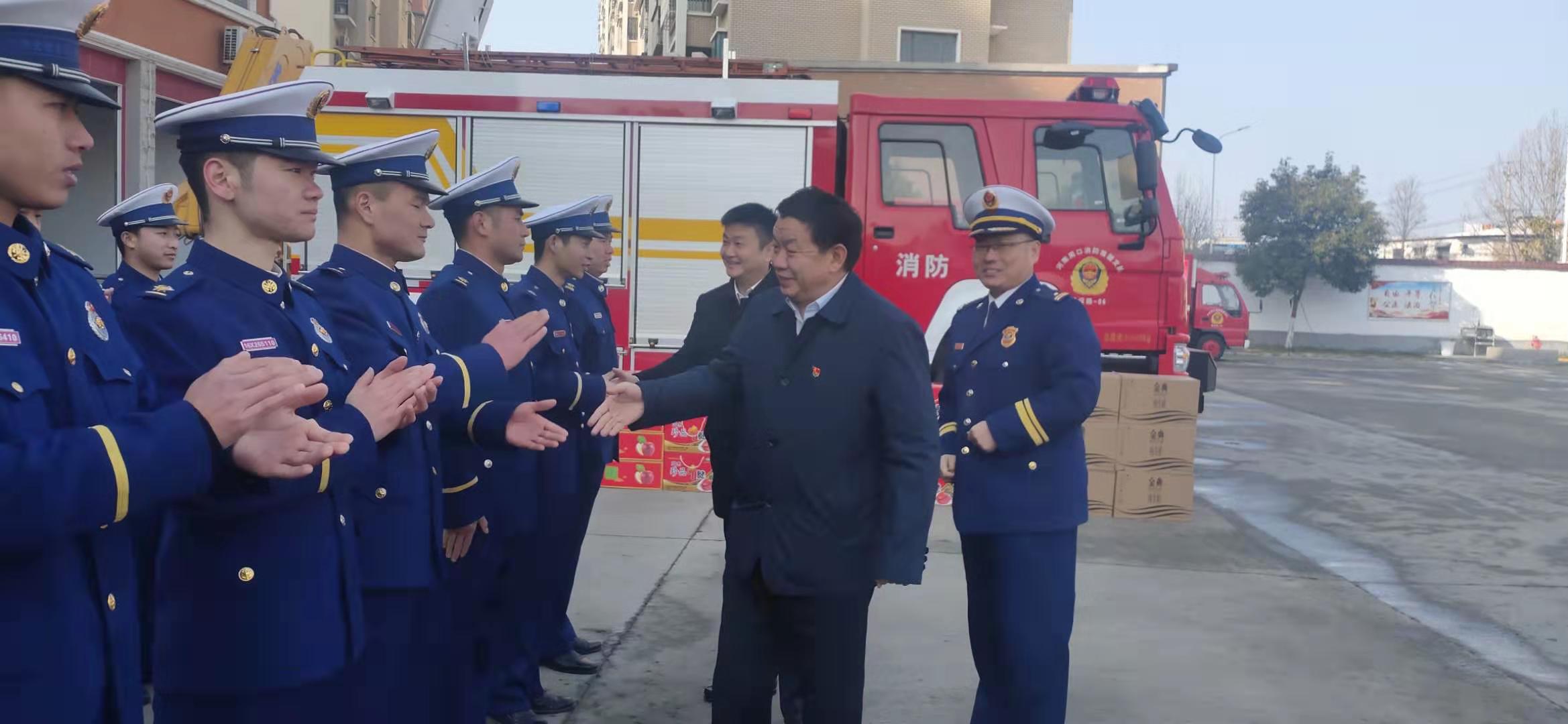 在川汇区消防救援大队,李宗喜一行与指战员们一一握手,并送上节日的祝福。李湛说,在过去的一年里,消防指战员牢记使命、履职尽责、竭诚奉献,是一支拉得出、冲得上、打得赢的铁军队伍,为保障全区经济建设、社会稳定和人民生命财产安全做出了突出贡献。希望大家在新的一年里再接再厉,忠诚履职,为全区经济社会发展做出新的更大贡献。