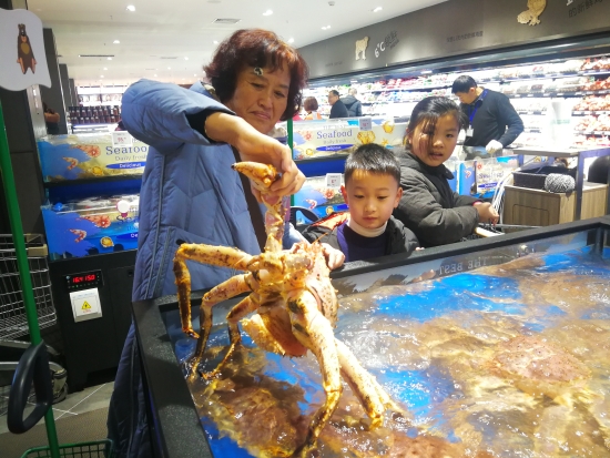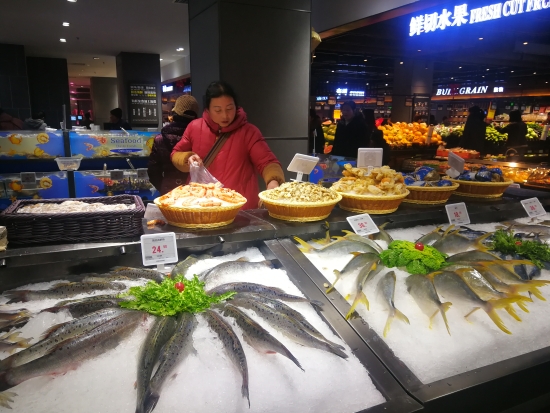 现在节前市场上,最受周口市民青睐的鱼类和海鲜,除了平时常见的草鱼、鲈鱼等活鱼,还有带鱼、鳕鱼、黄花鱼等冰冻海鱼,贝类数花甲、鲍鱼销量最大。价格比较贵的波士顿龙虾、面包蟹、帝王蟹等高档海鲜也受到一些市民欢迎,挑选海鲜的市民杨女士说;“我准备多买几种海鲜,年夜饭就做海鲜大餐,虽说贵了点,但一年就一顿年夜饭,也是对家人的一种犒赏。”