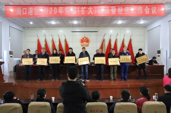 1月20日,周口港区召开党委(扩大)会议暨经济工作会议,会议回顾总结2019年港区经济工作,表彰在2019年度建设和发展过程中涌现出来的先进单位和先进个人,分析研判当前经济形势,安排部署2020年及今后一个时期经济工作。周口港区党委书记孙红伟主持会议,做党委工作报告;港区管委会主任程若光做经济工作报告。