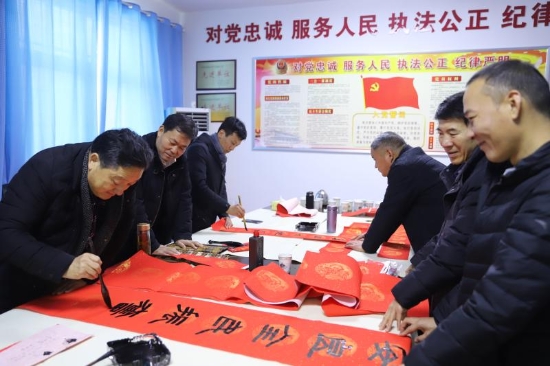 年末岁尾,我市书法家们到农村、进社区为群众们义写春联,成为节前一道靓丽风景线。1月16日,我市6位知名书法家来到周口港区公安分局,特意为节日期间还要坚守工作一线的公安民警、辅警现场写春联,送祝福。