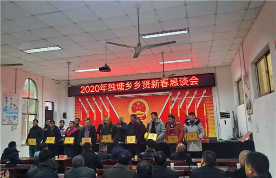最后,乡党委书记高毓明向与会乡贤代表送上了新春祝福,并介绍了独塘乡2020年发展规划和未来工作思路,希望有资金、懂技术的成功人士回乡发展创业。高毓明书记表示,独塘乡的每一分进步、每一份成绩的取得,都离不开乡贤们的鼎力支持,希望各位乡贤有空常回家看看,积极为家乡发展献言献策,为建设美丽和谐新独塘奉献自己的一份力量。