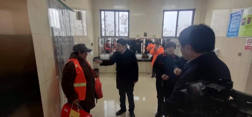 1月22日上午,在新春佳节来临之际,区长李湛先后到机西高速出口附近公厕、城北街道办事处朱楼行政村等地走访慰问环卫工人、困难党员、贫困户,向他们送上慰问品和党委政府的节日祝福。