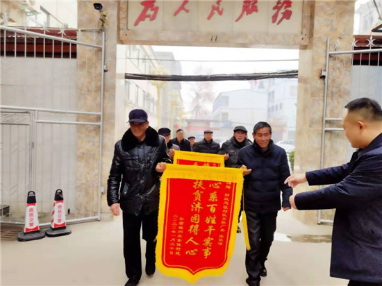 1月23日,鹿邑县张店镇闫庄村、西谢楼村、虎杨村"两委"干部及部分群众代表来到鹿邑县财政局,对鹿邑县财政局在精准扶贫工作中为村民办实事、做好事、解难事表达诚挚谢意,对局驻村帮扶工作队员孙广杰、解洪波、李进、笪玺铠、陈奇峰等同志表示衷心感谢,并现场送上了锦旗。