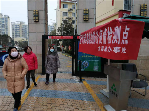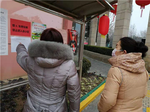 1月26日清晨,开发区太昊路办事处在辖区内小区门口陆续设立冠状病毒监测点,同时各小区内也张贴了应急小组分工及联系电话和疫情防控信息。
