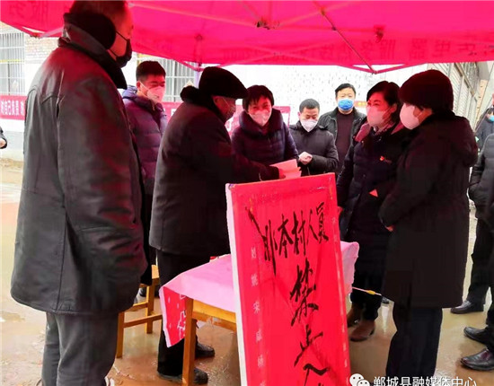 1月26日下午,郸城县委书记罗文阁到胡集、李楼、汲冢等乡镇督导检查新型冠状病毒感染的肺炎疫情防控工作,看望慰问坚守疫情防控一线的基层干部、医护人员、公安干警。副县长肖炜等参加督导。