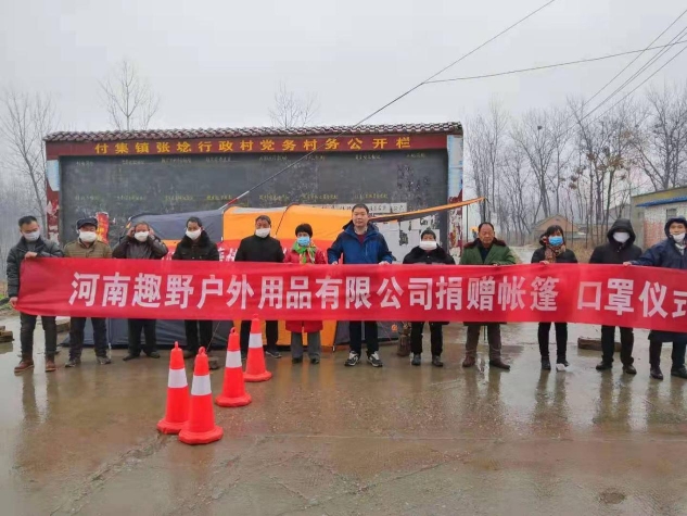 当日下午2点,河南趣野户外用品有限公司总经理姜威,在付集镇张埝桥村向付集镇捐赠帐篷21个、口罩400支行等价值3万余元的物资,助力付集镇打赢新型冠状病毒感染的肺炎疫情防治攻坚战。