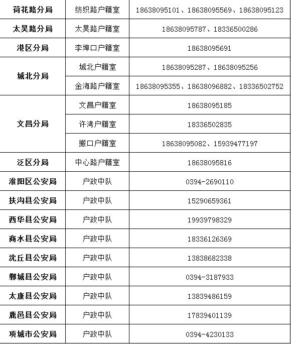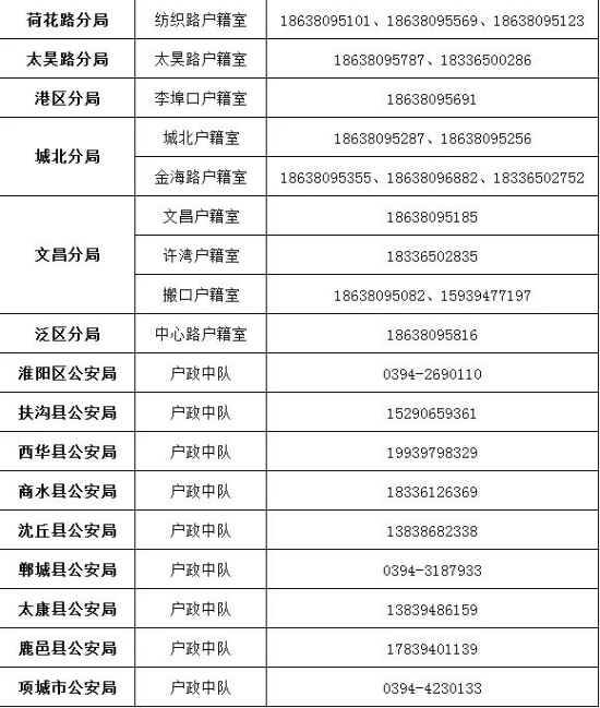 周口市暂停办理户籍和出入境业务,六种情况可特别办理(附各县市区联系电话)