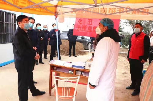 吴刚先后来到大王庄乡刘草楼村、迟营乡安庄村疫情防控卡点,与正在值守的镇村党员干部和村医亲切交流,现场检查防控检测措施,详细了解村内人员流动的排查检测及群防群治落实情况。叮嘱乡村干部要明确工作重点,全面排查掌握人员流动信息,科学、规范制定防控措施,在严防严控疫情的同时全力保障群众生活供应。