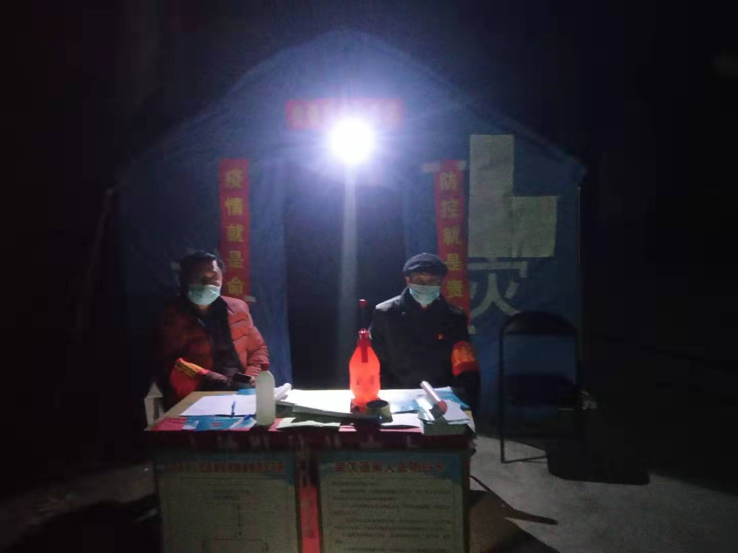 北岳村是白寺镇最大的村,有大小出村路口20多个,疫情防控难度大。该村除村干部、村医以外,又动员了教师、党员、志愿者80余人参与卡点值班。自1月26日大年初二设立卡点以来,24小时都有人值班,吃饭轮班,有的把饭送过来吃。晚上留专人住在帐篷里。9天来,这个卡点已累计劝返人员280人次,劝返车辆80多辆次,登记进出村庄人员430人次。