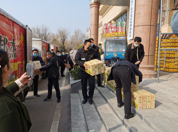 周口高新区管委会接收爱心企业家和人大代表捐献后,根据区委、区政府的要求和现阶段川汇区抗击疫情的紧迫形势,迅速购买一批食品、酒精、口罩、医用手套、消毒液等送到九个办事处、八个社区医院、四个定点医院、部分社区疫情防控卡点、高速收费站卡点和环卫公司的一线工作人员手中,周口高新区管委会主任张兴龙每到一处,并向他们带去爱心企业家和人大代表的关心和问候,相信我们大家众志成城、坚定信心、同舟共济、科学防治、精准施策,一定能打赢这场疫情防控阻击战!