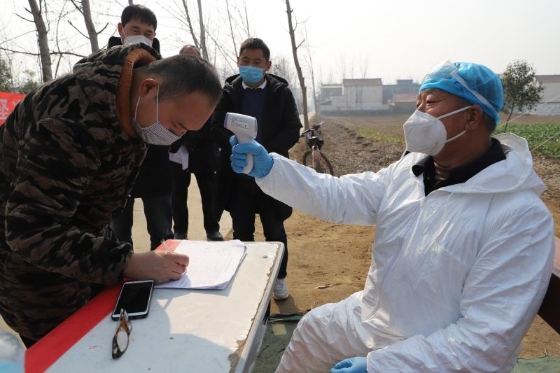 起初,苑统俊配合村干部在村里宣传疫情防控政策、方法,1月25日,我省启动一级应急响应,港区迅速做出响应,在辖区内各个村庄社区设置疫情监控点,限制人员流动,全天候监测进出人员身体状态。苑统俊担起监控点村医的职责,负责该村一至四组的疫情防控。他每天骑电动车前往孙庄村监测点值守,为过往人员测量体温、观察外地返乡人员状态、登记观察正处在隔离期的从湖北、武汉返乡人员体温数据,为乡村干部开展防控工作提供技术支持。