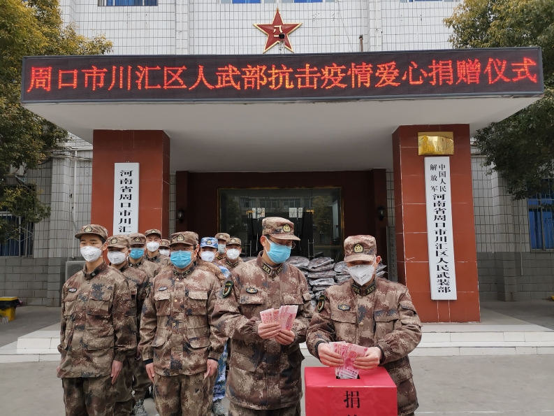 “疫情就是命令,防控就是责任。我和政委各捐1000元,大家根据个人情况为防控疫情工作出一份力吧。”当日下午,川汇区人武部院内,部长陈继芳、政委高新传带头捐款,大家积极响应纷纷捐款,没有赶到单位的干部职工也通过微信转账捐献善款,此次共收到4135元爱心款。考虑到近日气温下降,人武部还购买了141件07式荒漠军用迷彩大衣。为了让一线执勤人员早点穿在身上,人武部两位主官立即出发,先后赶到川汇区卫生局、城北办事处、华耀城办事处、小桥办事处等防疫执勤点,亲手把军用大衣送到他们手中,嘱咐大家一定要安全谨慎、注意保暖。