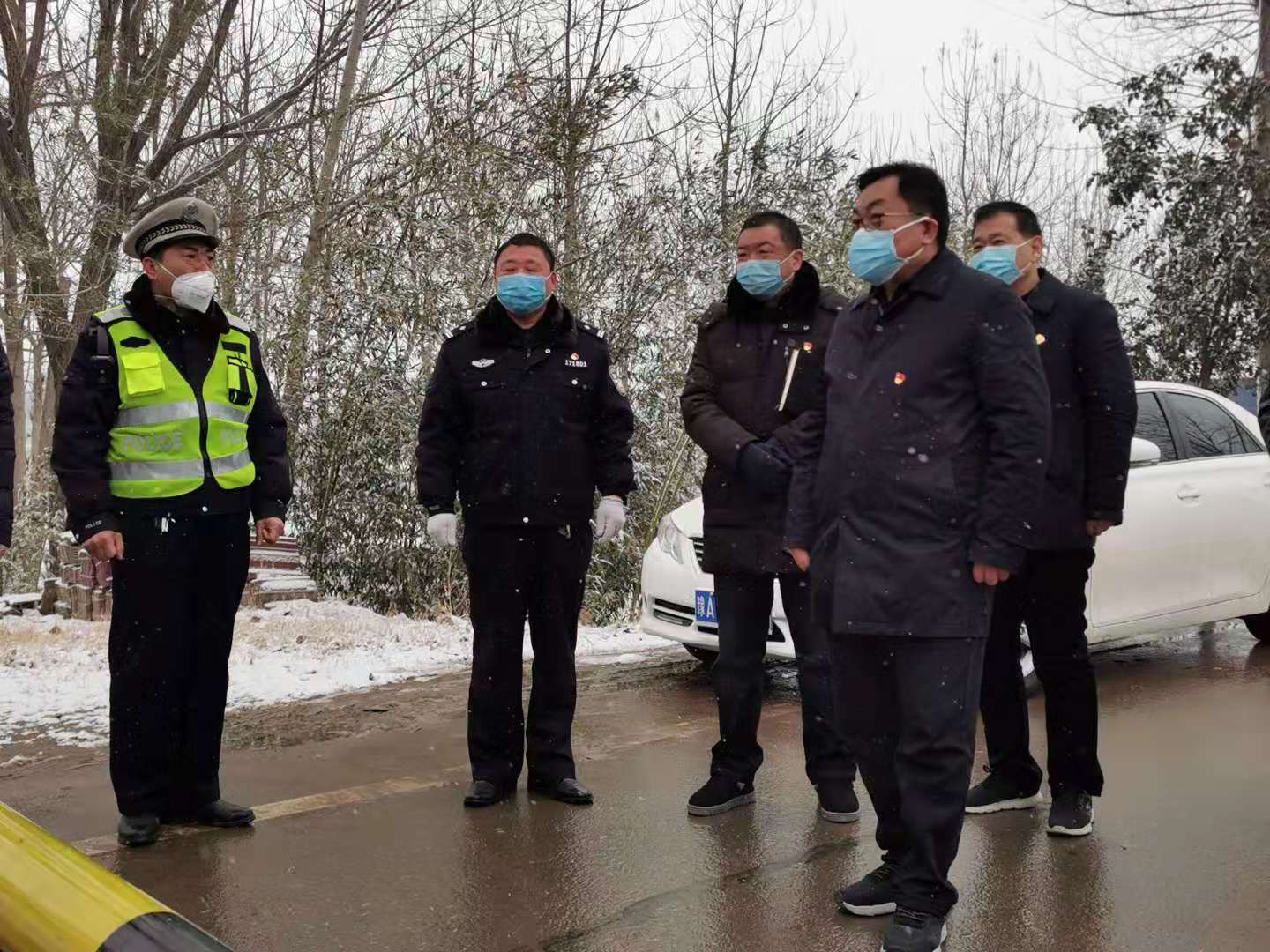 县领导谢成营、张雪芳、司春荣、李根闯、交通局局长王玉藏参加检查。