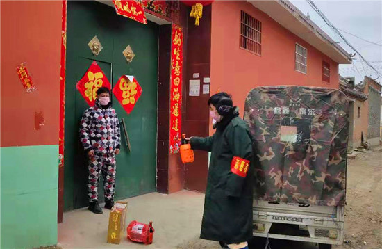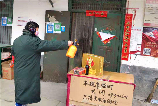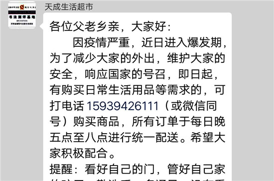 为了保障村民的日常生活,该村党支部征得村民同意,鼓励村民微信购物,线上下单,线下由超市负责人做好消毒和防护工作后挨家配送。