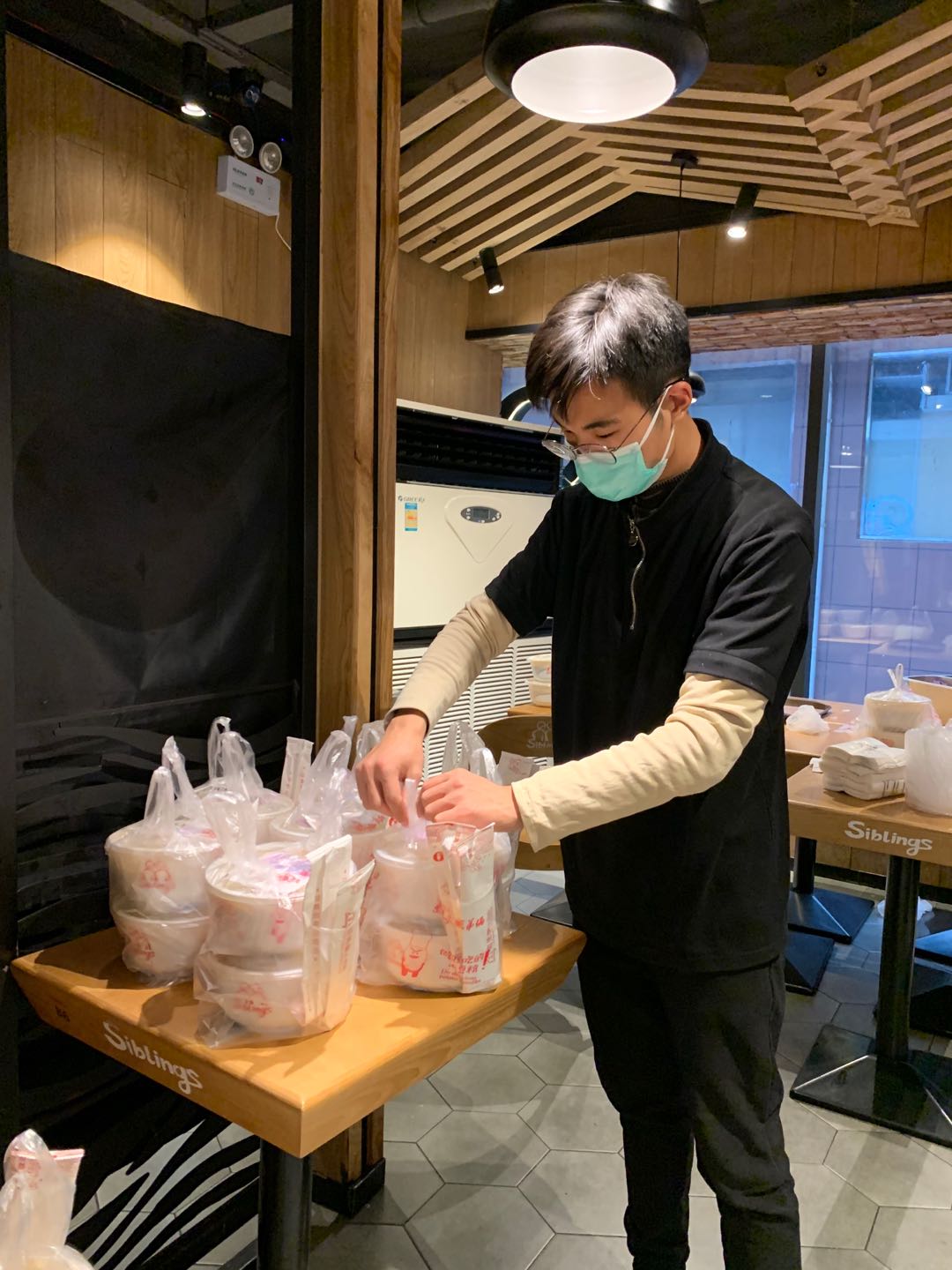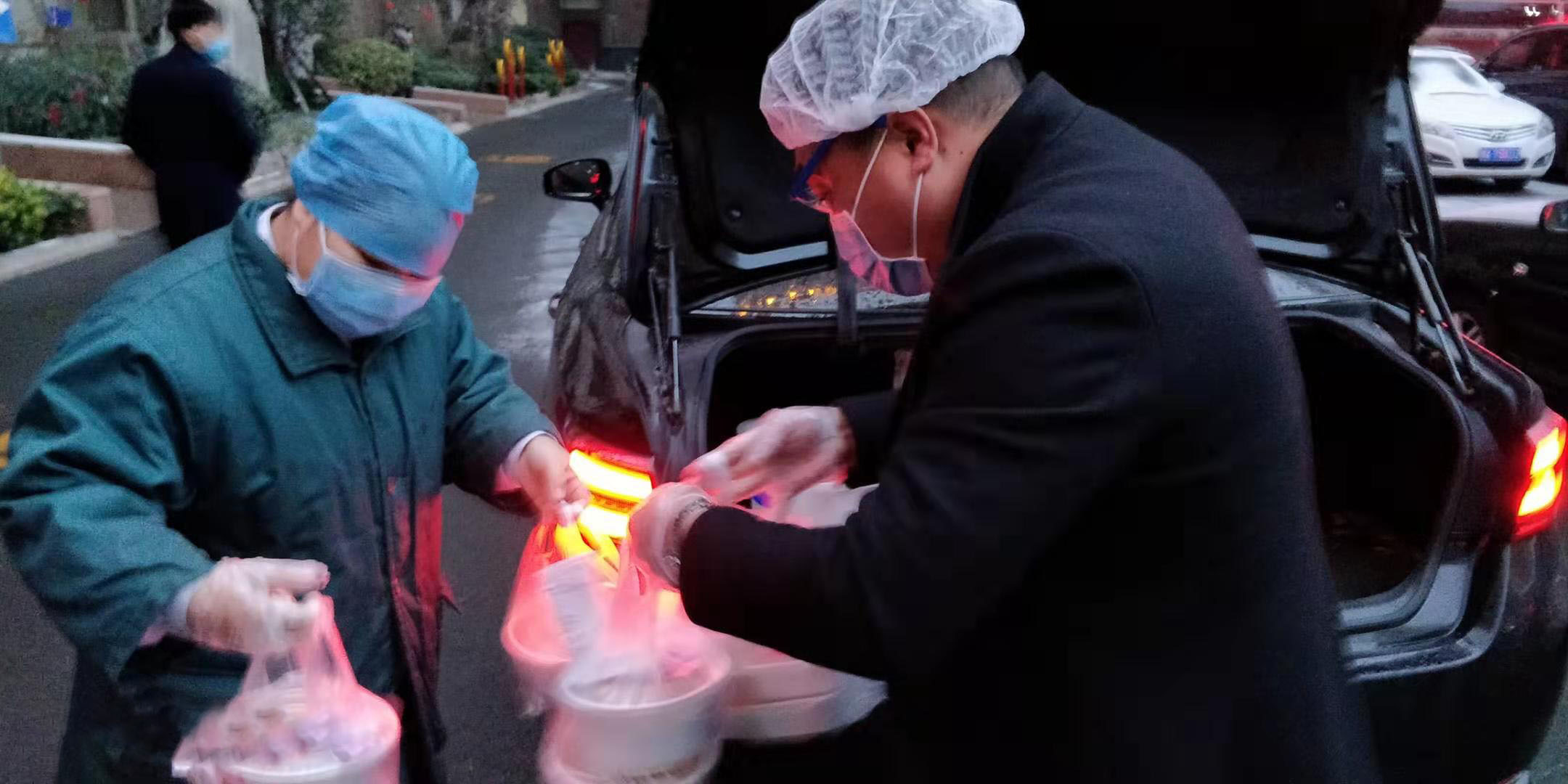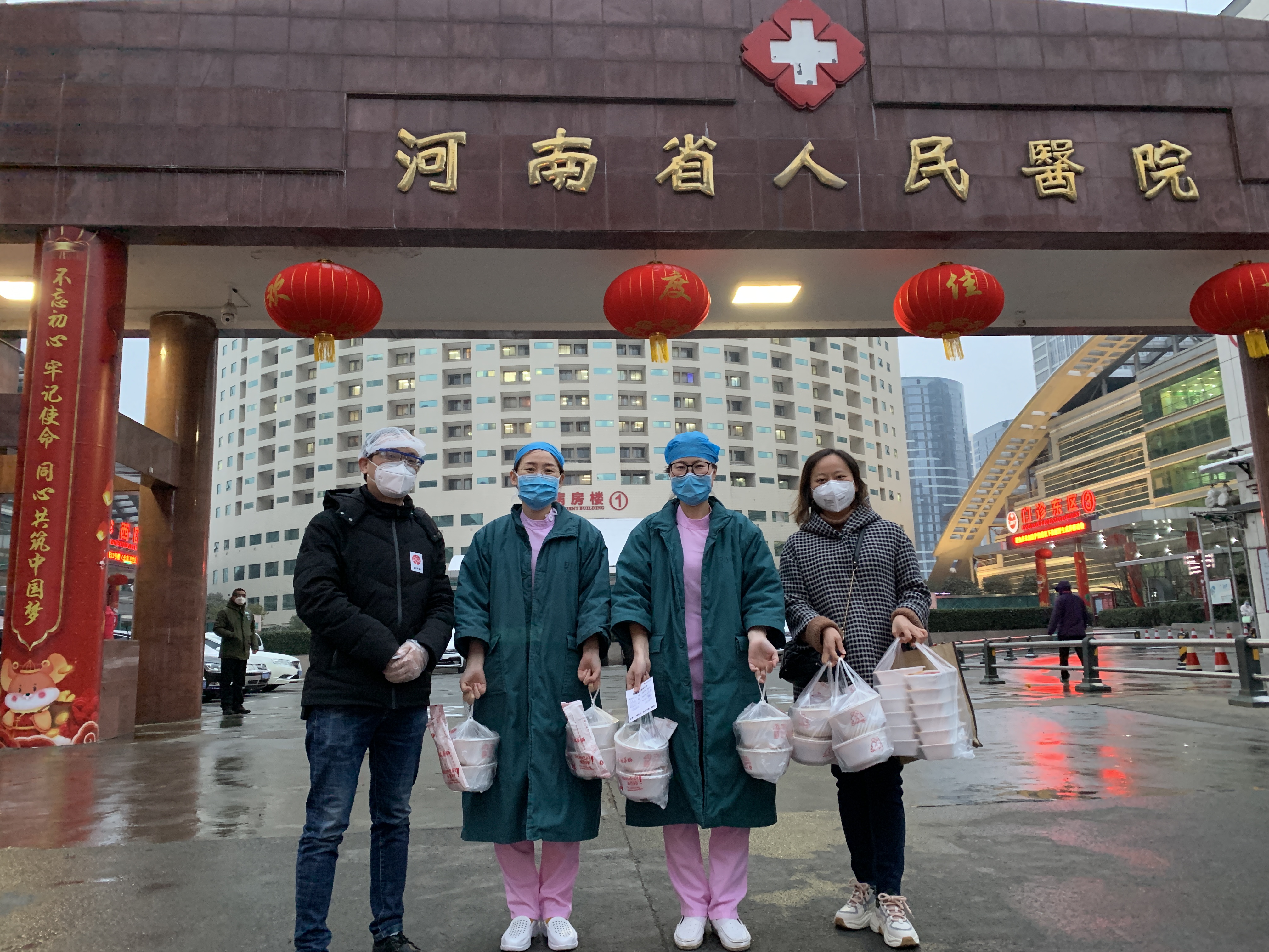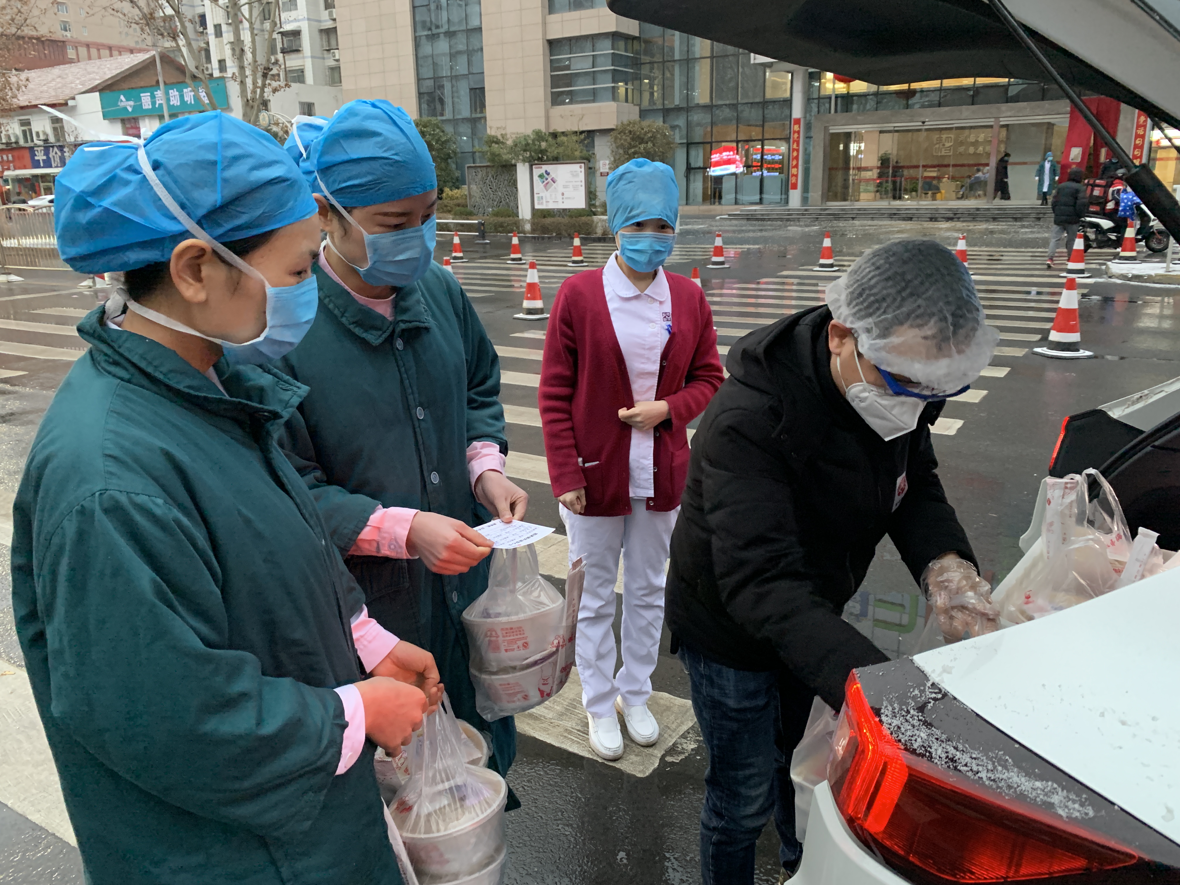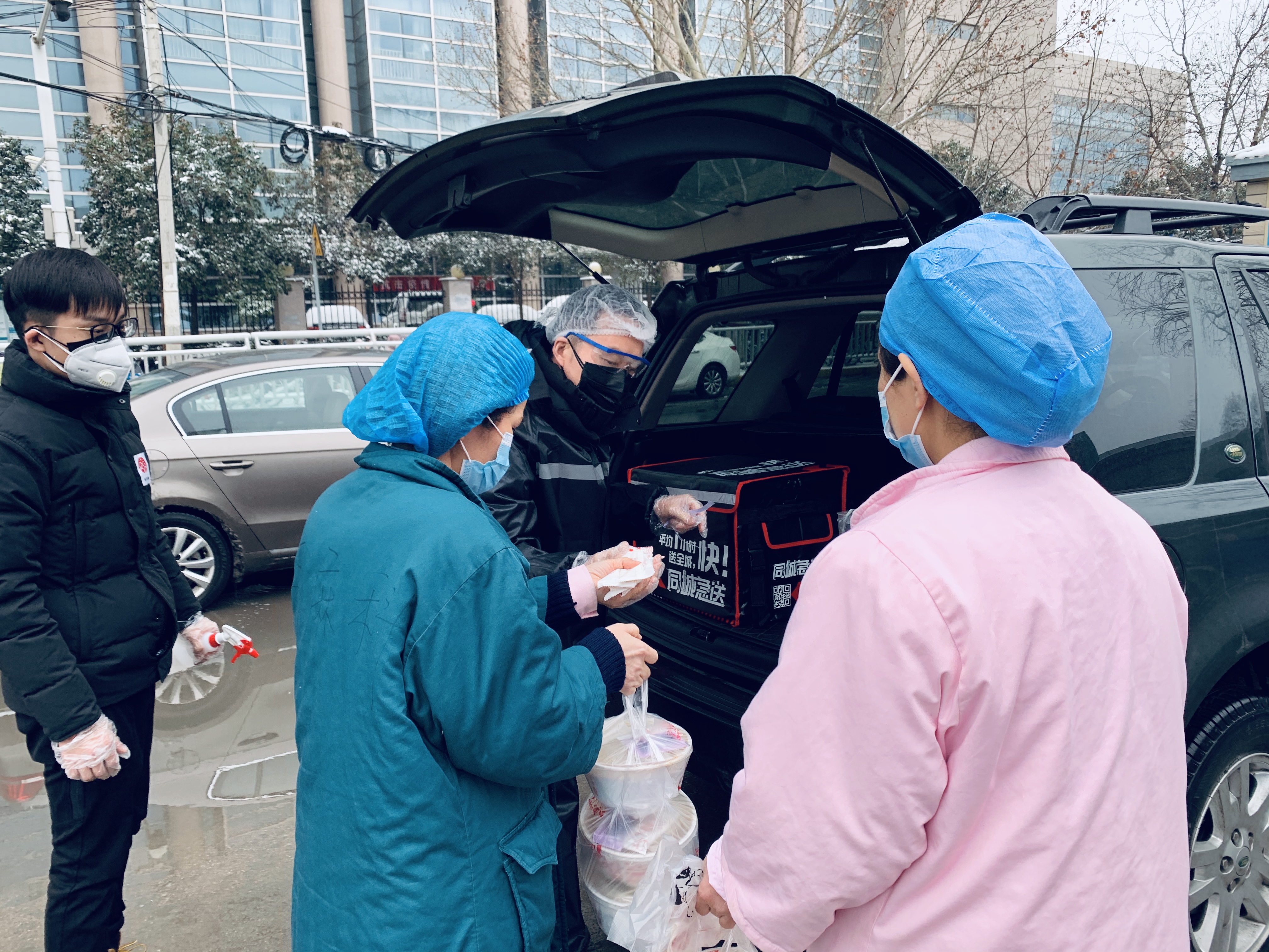 由于春节期间暂停营业原因,公司一线员工放假回家,负责此次爱心行动送餐任务的大部分是公司的 管理层人员或行政人员。从2月5日上午11点开始,宋留欣和小伙伴就在门店和各大医院之间奔波。