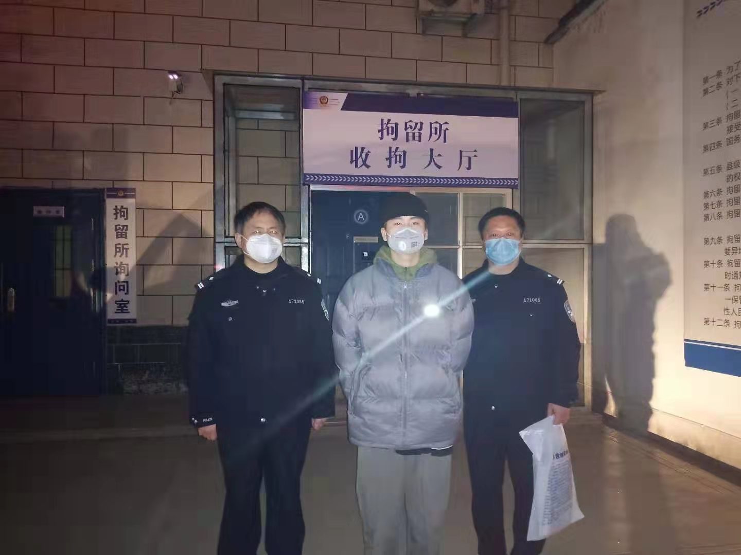 2月12日上午,荷花路公安分局治安大队接群众报警称,在闫庄社区防疫卡点,一名男子拒不接受检查,强行闯卡,推搡、殴打防疫工作人员。接警后,治安大队副大队长李春灿立即带领值班民警赵春峰、董智超赶赴现场,迅速控制了正在实施暴力行为的男子,并将其带回大队进一步处理。