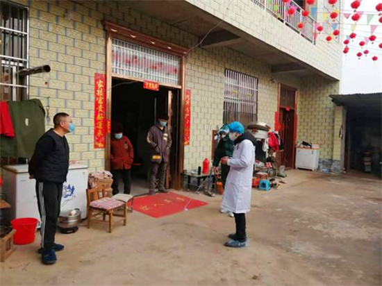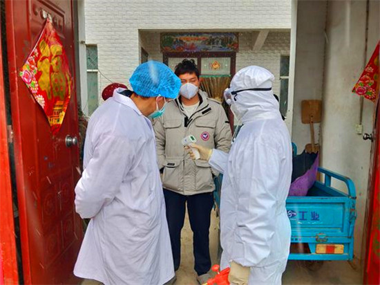 张彬和同事到村民家中测量体温
