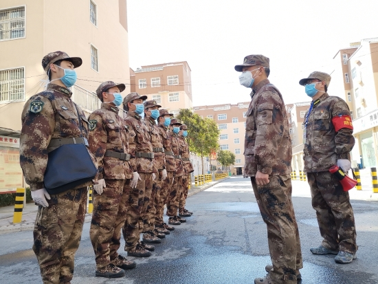 本应是阖家团圆的春节,却因一场不期而遇的战“疫”,变成了一场全民动员的行动。面对“疫”战,精锐尽出。川汇区人和办事处庆丰社区近日活跃着一支“特殊”的队伍,这支由10余名预征青年自发组成的疫情防控应征青年志愿服务队,他们在办事处武装部领导的带领下,身穿迷彩服,带上口罩,逆行在抗战疫情一线,以预征青年昂扬向上的姿态,让鲜艳的党旗在战“疫”阵地高高飘扬。