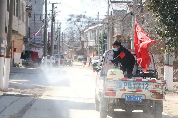 突发的疫情让驻村干部董亚伦放不下心,20多天以来,白天值班、晚上查岗,通过协调他又找到了“战狼义务救援队”公益组织来给村里免费消毒。大型喷雾器对村内大街小巷的喷洒消毒董亚伦也是亲自上阵,村民都说来了一位“上得厅堂下得厨房”的驻村干部。