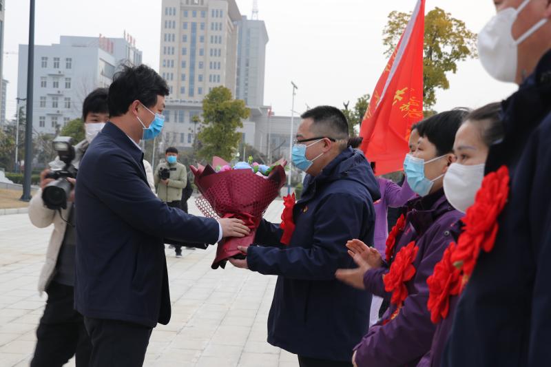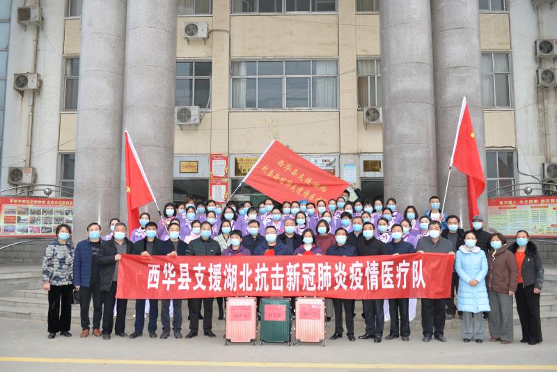 2月21日上午,西华县驰援湖北抗击疫情医疗队5名医护人员在该县市民中心广场集结。县委书记、县疫情防控指挥部总指挥林鸿嘉出席出征仪式,并为他们送行。