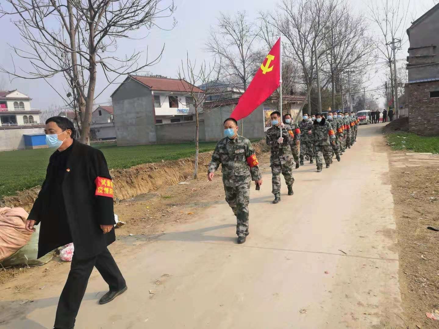“试量镇郎庄村在前期确诊一例的情况下,又出现多个疑似病例,全村有可能感染面积扩大,情况比较危急。”自疫情发生后,鹿邑县人武部根据县委、县政府指示要求,紧急动用试量镇民兵应急排30人,携带就便器材,配合县公安干警对郎庄村进行封控,限制人员进出。并开展走访调查,配合医生测量体温,开展政策宣传和心理疏导。”