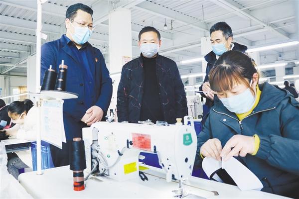 为保障抗击疫情、企业复工复产协调推进,连日来,郸城县纪委监委组织纪检监察干部深入复工复产企业,了解企业复工审批、疫情防控措施落实等情况,督促有关部门及时解决企业面临的难题,切实发挥监督保障作用,全力护航企业复工复产。图为昨日,该县纪检监察干部在河南旭升帽业有限公司生产车间了解复工复产情况。