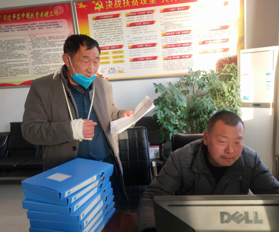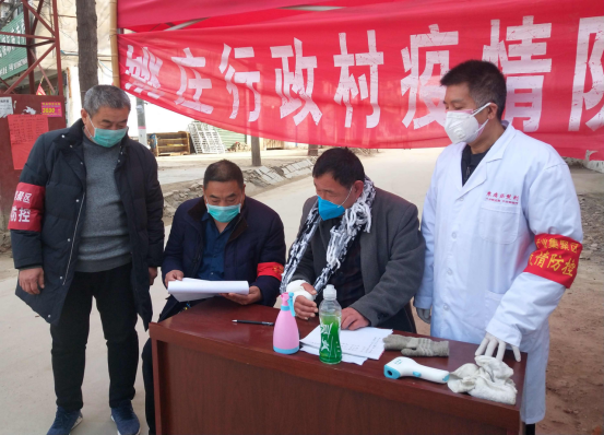 2月24日下午,在鹿邑县产业集聚区姚庄行政村执勤卡点,右手臂打着夹板、扎着吊带的村会计鲁双全在忙着指导汇总全村各地返乡人员名单。今年已经59岁的鲁双全是一名有着20年党龄的老党员,自疫情防控工作开始以来,就一直坚守在一线,入户宣传、排查登记、消杀防疫、卡点执勤工作岗位上,他常说,“越是危难之时,党员越要带头冲锋在前”。
