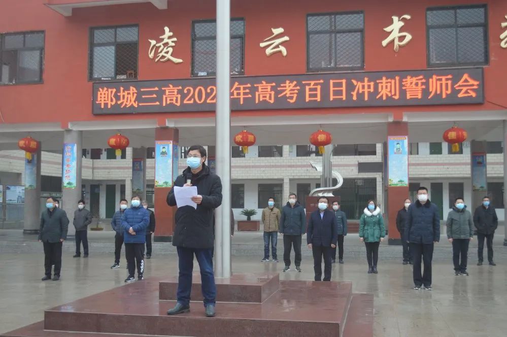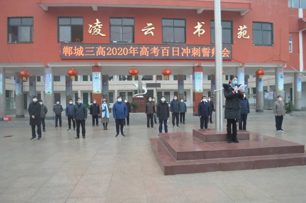 料峭寒风挡不住春天的脚步,无情的病毒压不垮中华民族,肆虐的疫情磨灭不了郸城三高学子冲刺高考的热情。2月26日,在新冠疫情防控的关键时期,郸城三高以现场和网络同步的形式进行2020年高考百日冲刺誓师。