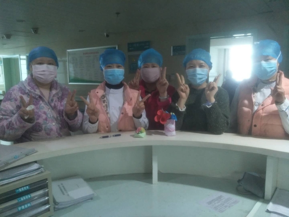 2月25日上午, 35床的王娟娟带着几位同样是肿瘤患者的“朋友”, 捧着一束用纸折叠的自制手捧花,有玫瑰、有百合,一起走向护士站。王娟娟向医护人员说道 “我们同为肿瘤患者,是属于免疫力最低的一个群体,在疫情爆发期间,我们的心情无比恐慌、担心和害怕。是你们给了我们安慰、理解和帮助。你们每天对病房进行消毒、通风,不断叮嘱我们勤洗手、戴口罩,鼓励我们克服困难、战胜病魔、树立生活信心,你们无微不至的关怀带给了我们很多感动与鼓励,你们的责任心更让我们佩服,真心感谢你们……”