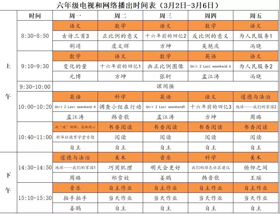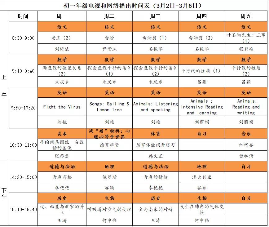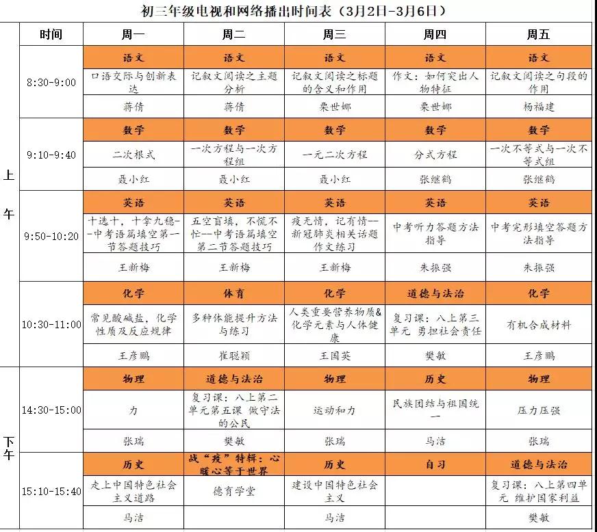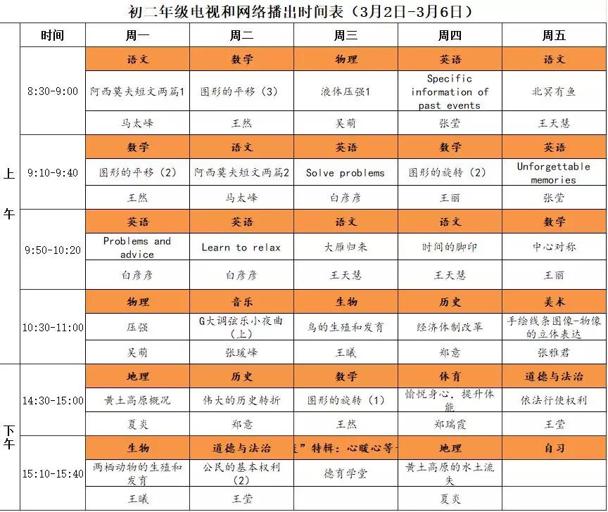 初中课程详细播出时间表