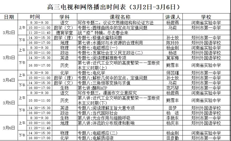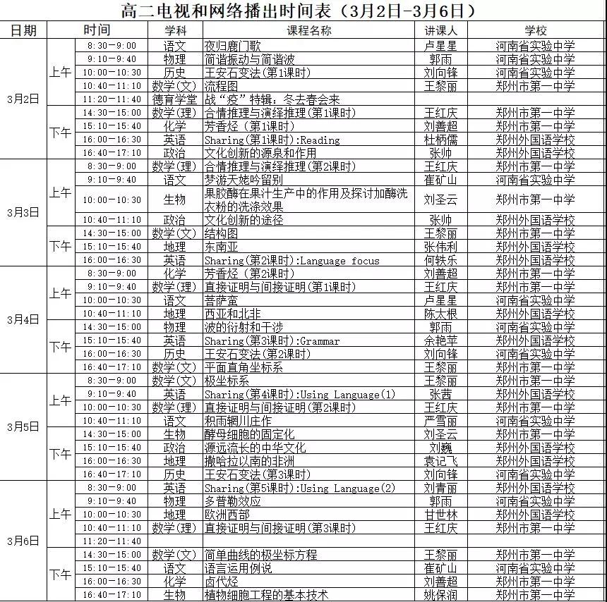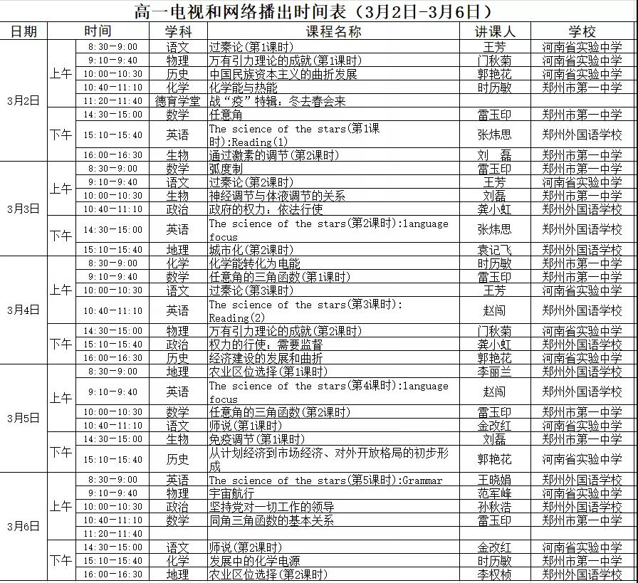 高中课程详细播出时间表