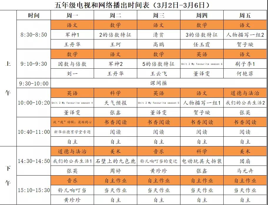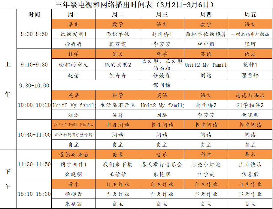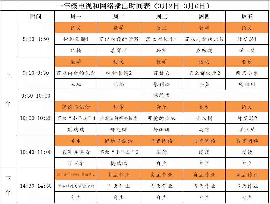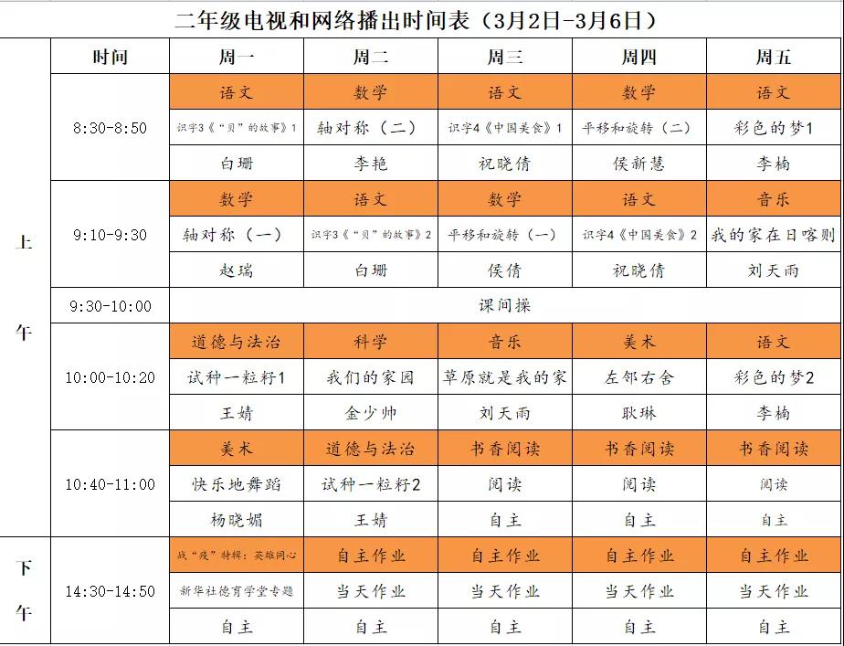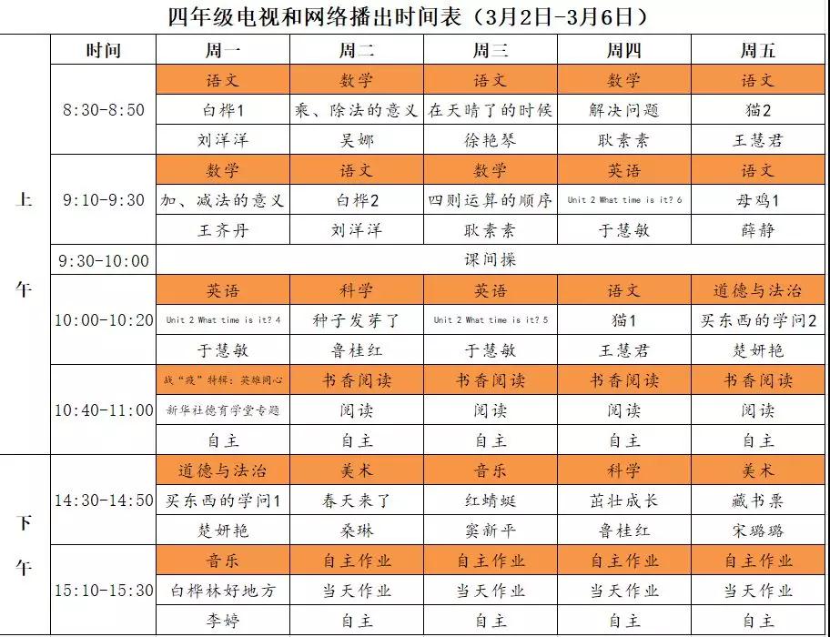 小学详细播出时间表