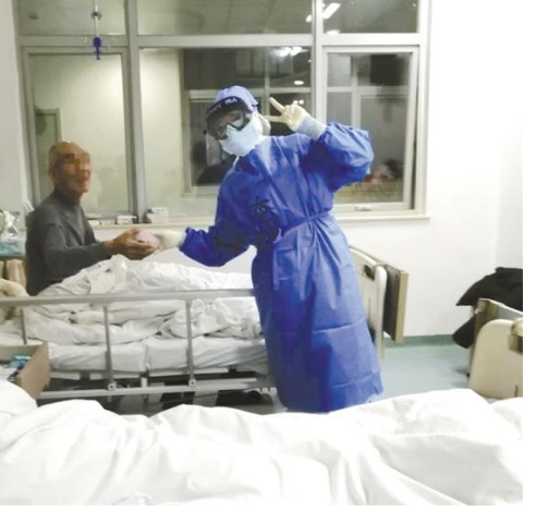 “这是我们应该做的工作。您辛苦了,一定要加油哦。”做完检测、量完体温,胡奔奔将9号床患者的手轻轻放进被子,并为他掖了掖被角。