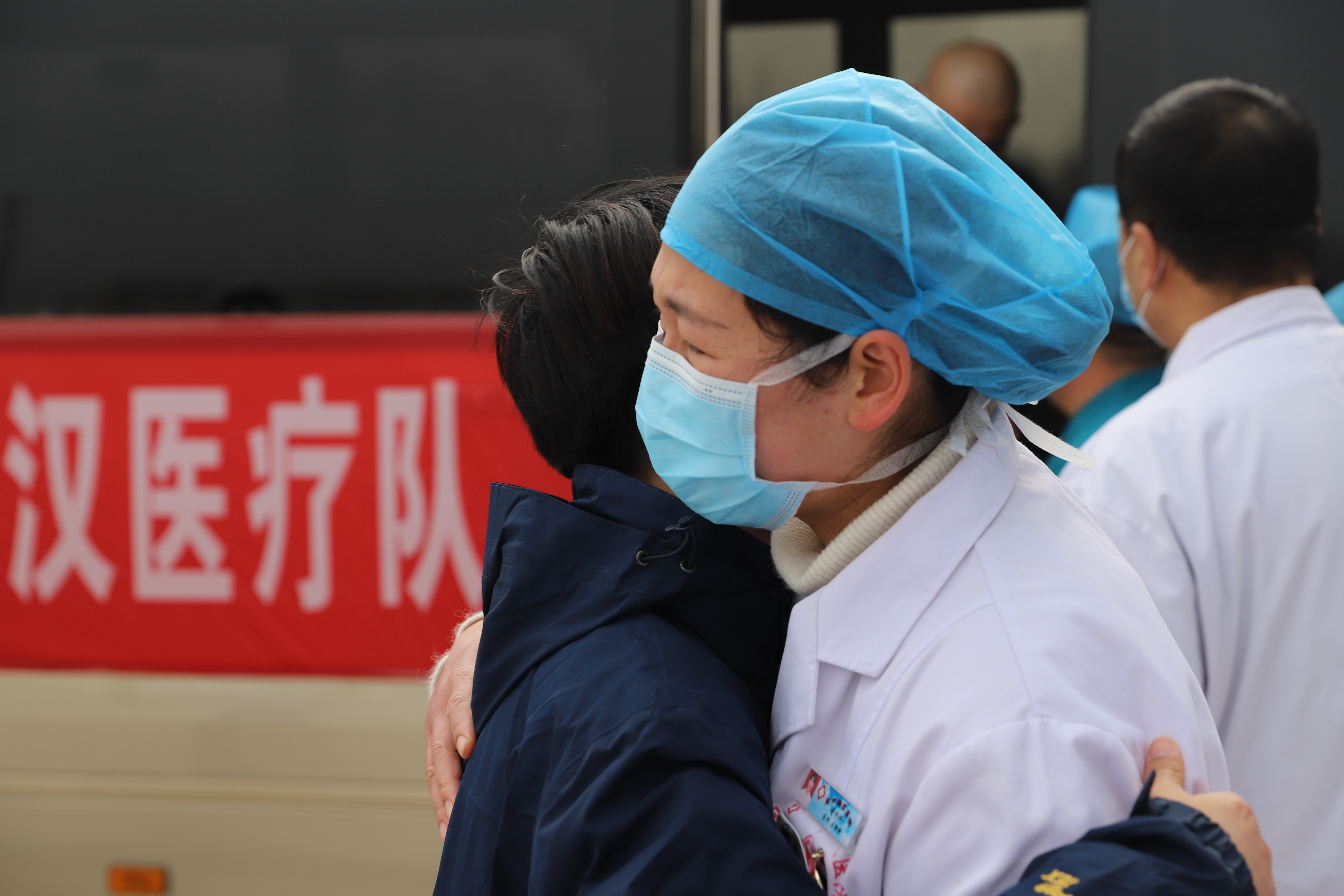 医疗队中的小王此行得到了丈夫的支持,但没有跟父母商量,所以不愿意公开姓名。她说:“这件事迟早会被父母发现,但是让他们晚知道一天,就能少为我担心一天。”疫情爆发以来,港区医院对疫情防控工作进行部署,小王多次向医院领导写请战书,要求到抗击疫情最前线的发热门诊工作,目前她已经在发热门诊工作30多天,期间曾连续十多天没回过家。