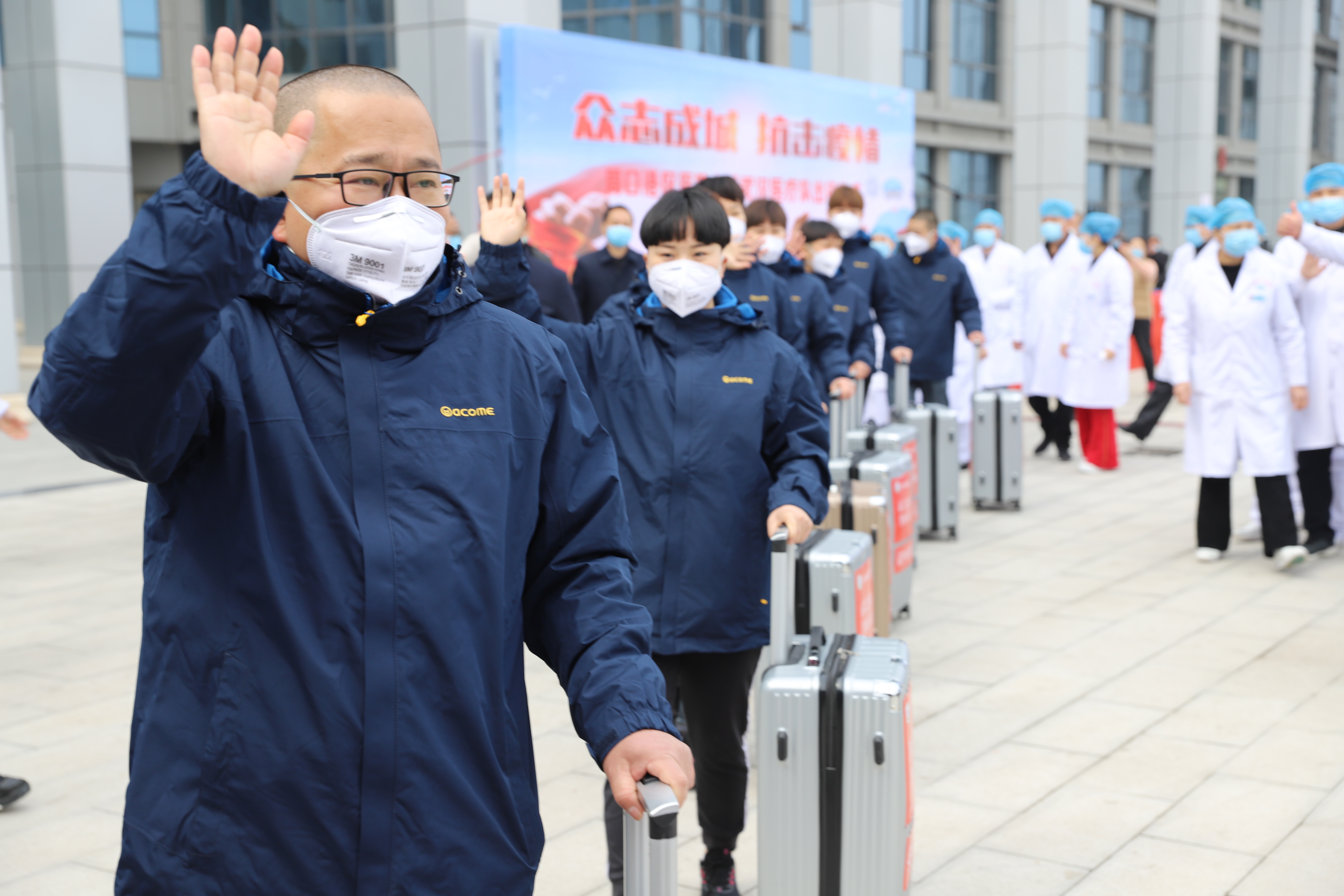 当天上午港区医院为医疗队举行了一场欢送仪式,到场的不仅有该院的医护人员和部分出征队员的家属,市领导和港区党委、管委会领导也亲自到场,为他们送行。
