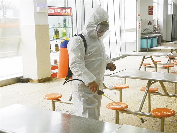 本报讯 (记者 王珂 文/图)新冠肺炎疫情发生以来,全市教育系统牢固树立“疫情就是命令,防疫就是责任”的工作思路,把广大师生的生命安全和身体健康放在首位,对校园进行全方位消杀,竭力为师生提供安全、卫生的工作和学习环境。