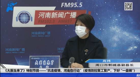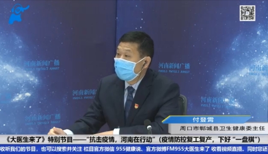 3月5号上午,河南新闻广播《大医生来了》特别节目——“抗击疫情,河南在行动”,特邀请郸城县副县长肖炜、郸城县卫生健康委主任付登霄做客直播间对话郸城医共体下的疫情防控。