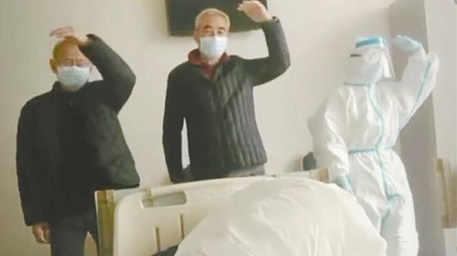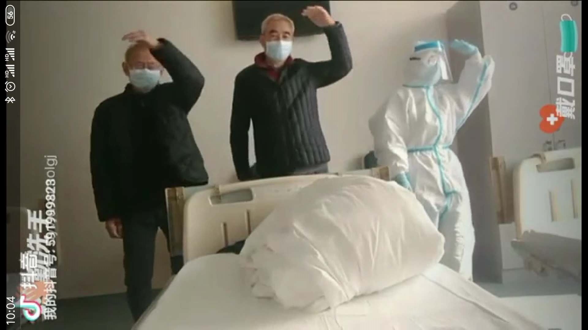 3月6日,周口援鄂医疗队的微信群因为一段抖音视频而变得欢乐。视频中,两位老人和一位穿着防护服的护士,正踩着“小黄鸭”的魔性节奏在病床前尬舞……