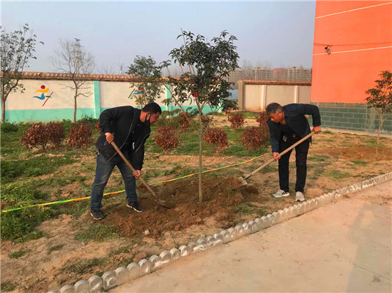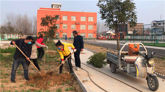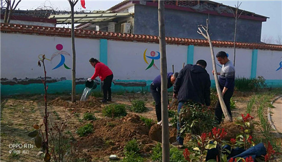 阳春三月,春风吹绿了枝芽,吹绿了草地,樱桃花、梨花争相开放。植树节前夕,西华县蒋庄小学组织老师一边战疫情,一边开展植树造林活动,坚持在疫情中为校园再添新绿。