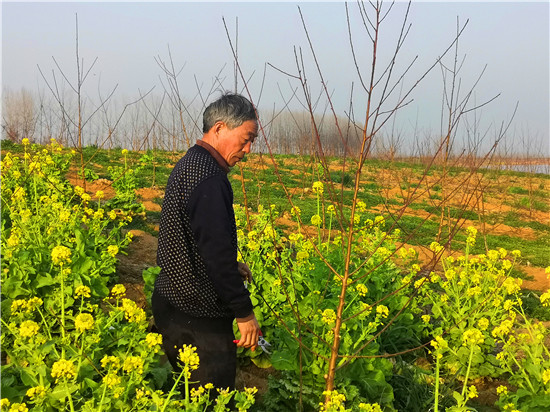 3月10日,沈丘县老城镇岳庄村村民在进行果树整枝。