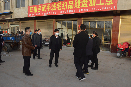 梁建松一行先后到卫真办事处小洪洼社区、鸣鹿办事处王台社区以及穆店乡、玄武镇、丘集镇、涡北镇等缝盘加工扶贫车间进行调研,每到一处,梁建松都与缝盘车间负责人进行亲切交谈,详细了解车间生产运营、培养熟练工人及吸纳当地群众就业情况,并鼓励他们要坚定信心,发展好致富产业。